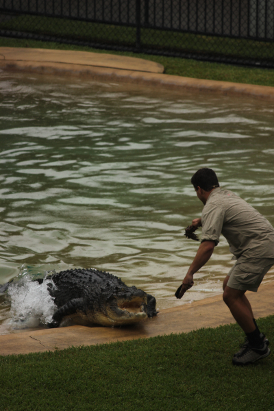 The absolute highlight of the whole day (for me) was seeing Teri, Robert, and Chandler run out to do the crocodile feeding part of the show. For those who may not know, Teri grew up about two hours south of where I grew up in the states, and I actually got to meet her and talk to her (briefly) when I last visited the zoo in 2005.